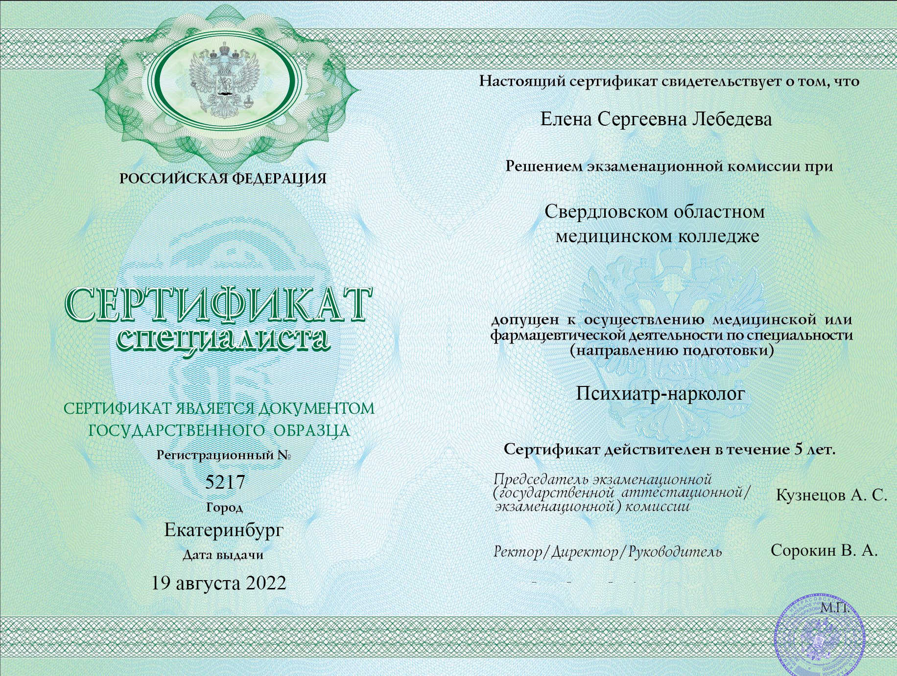 Елена Сергеевна Лебедева врач нарколог клиники доктора Стукаловой в Бугуруслане